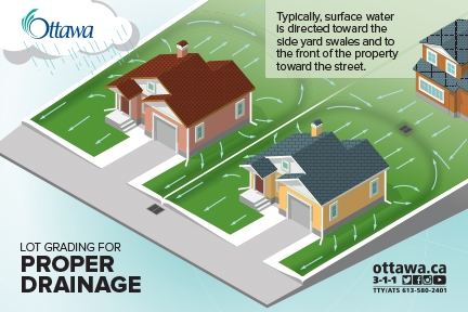 When hiring private contractors for landscaping or yard alteration, ensure that they respect the intended drainage design when carrying out work. This will reduce additional costs and stress that stems from improper lot grading.